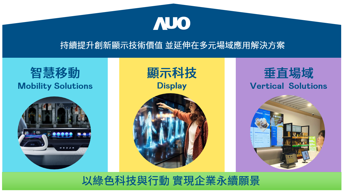 NG28持續推動「雙軸轉型」,在精進顯示技術附加價值(Go Premium),與深化垂直市場應用(Go Vertical)的策略下,對應NG28的優勢競爭力與趨勢,NG28奠定顯示技術、智慧移動、垂直場域三大永續營運支柱,在顯示技術領域的根基之上,延伸布局多元場域應用解決方案。將先進顯示科技助力智慧移動及垂直場域發展,並以綠色科技與行動為實踐,在轉型之路上貫徹永續經營之願景。